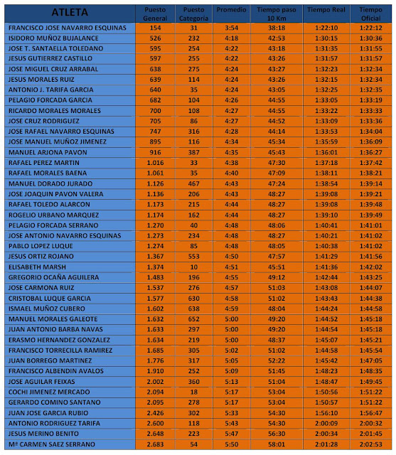 Para finalizar queremos igualmente agradecer a nuestro compañero Antonio Toledo que nos acompañara como fotógrafo aunque realmente lo que deseamos todos es que en la próxima prueba deje la cámara en la mochila y pueda correr junto a nosotros…¡¡Antonio, hoy es un gran día para comenzar de nuevo!!.CLASIFICACIONES