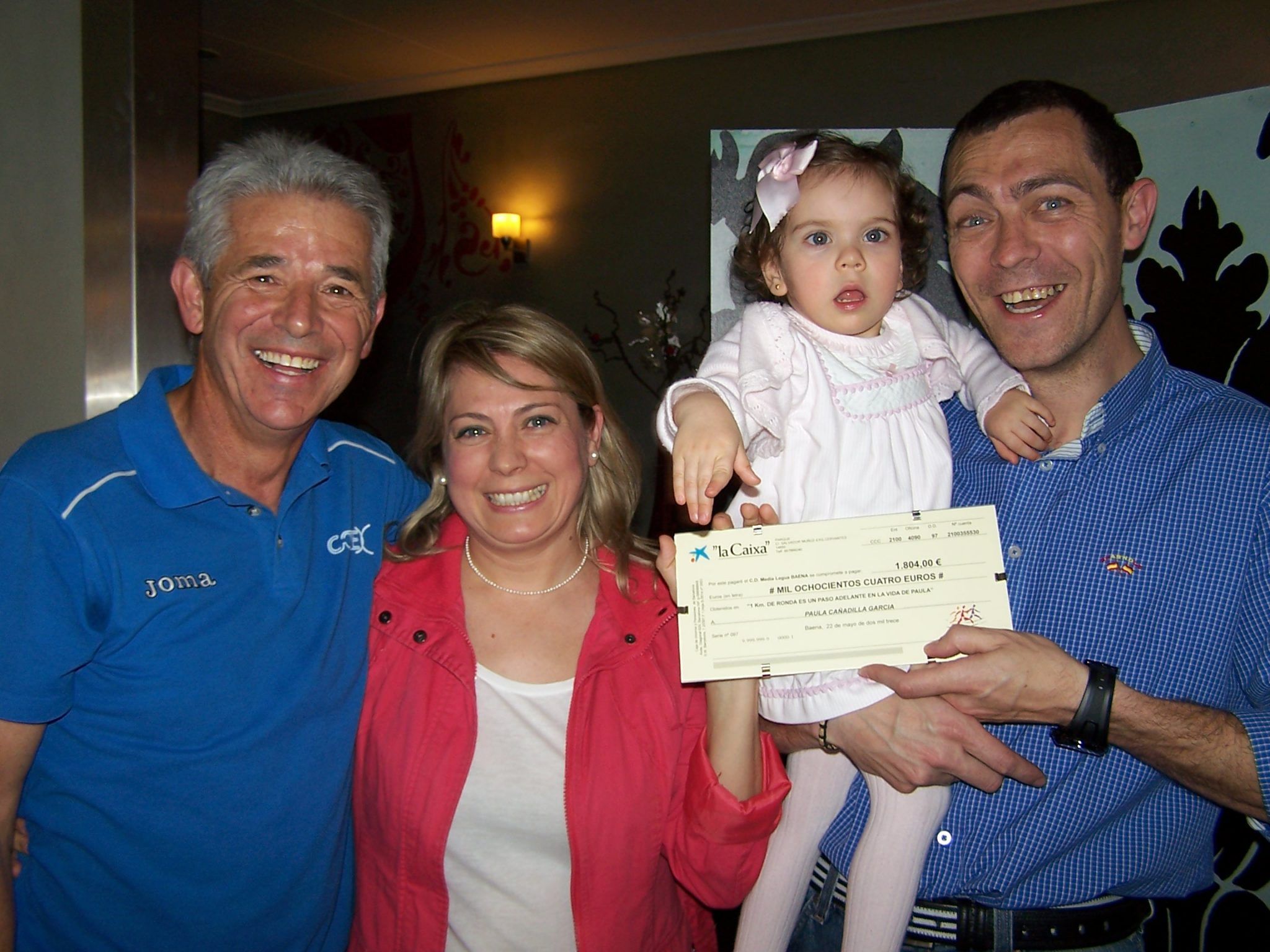 Se ha conseguido, gracias a la colaboración de toda la familia «Media Legua» y amigos, entregar a Paula la cantidad de 1.804,00 euros que seguro serviran para dar nuestro pequeño empujón en su gran carrera por la vida.