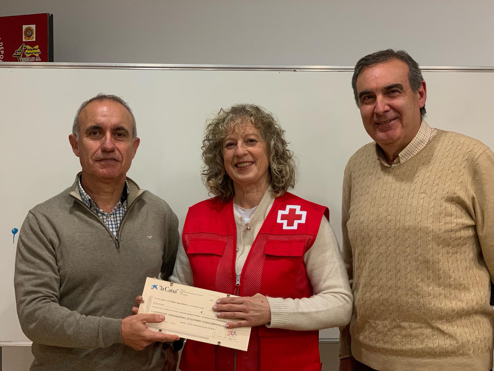 Al finalizar la asamblea, el CD Media Legua Baena hizo entrega a Belén García, presidenta de la Asamblea Local de Cruz Roja Baena, de la recaudación obtenida en la XVIII San Silvestre, que ha ascendido a 1.500 euros.